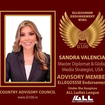Actualmente es miembro consejero del G100 Auspiciado por la Liga Mundial de Mujeres. y consultora de Promoción exterior.